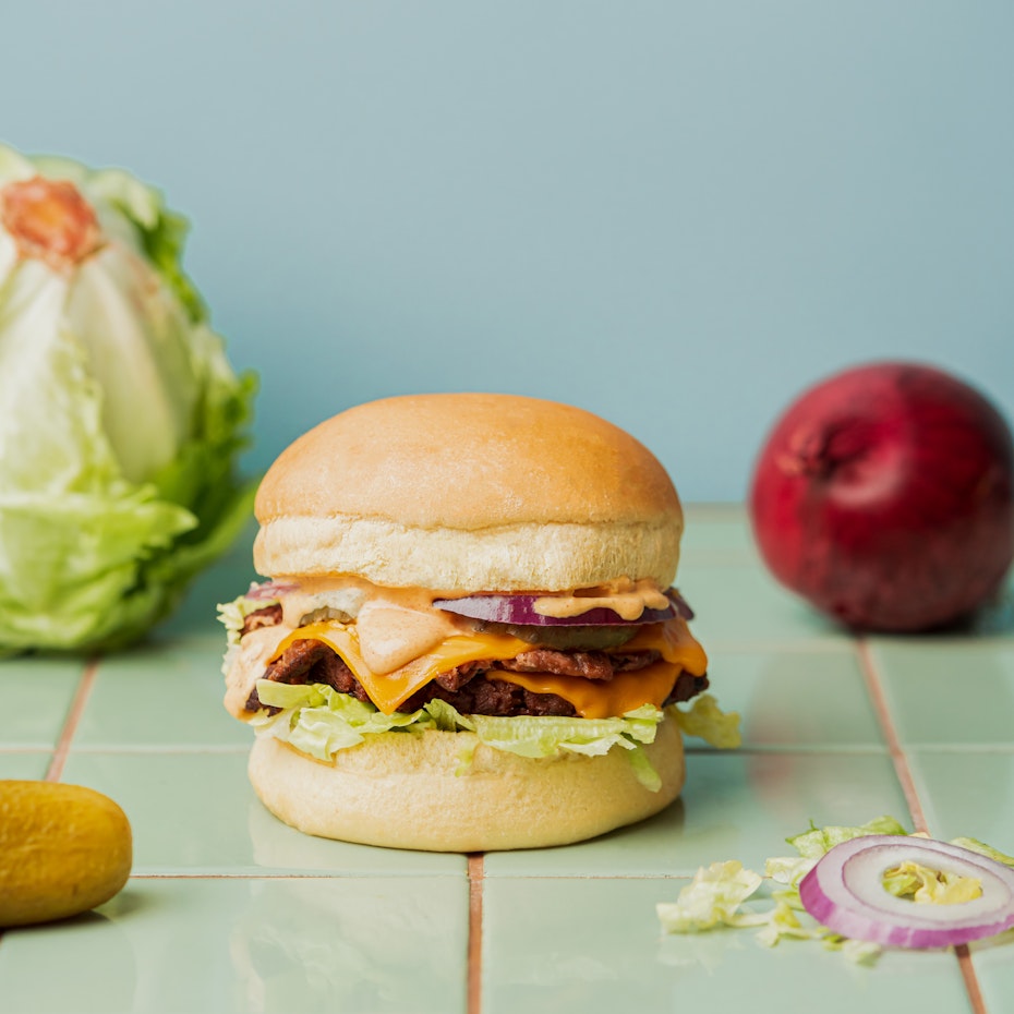 - 4Para montar la hamburguesa coloca primero la lechuga, después el tomate, después la hamburguesa Heura con el queso derretido.