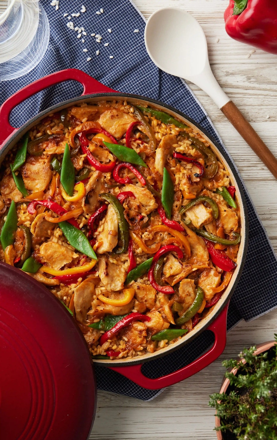 - 2Ajouter les poivrons en julienne et cuire. Verser le ketchup et réduire pendant 5 minutes. Ajouter à nouveau les bouchées orignales d’Heura et les haricots verts en portions.
